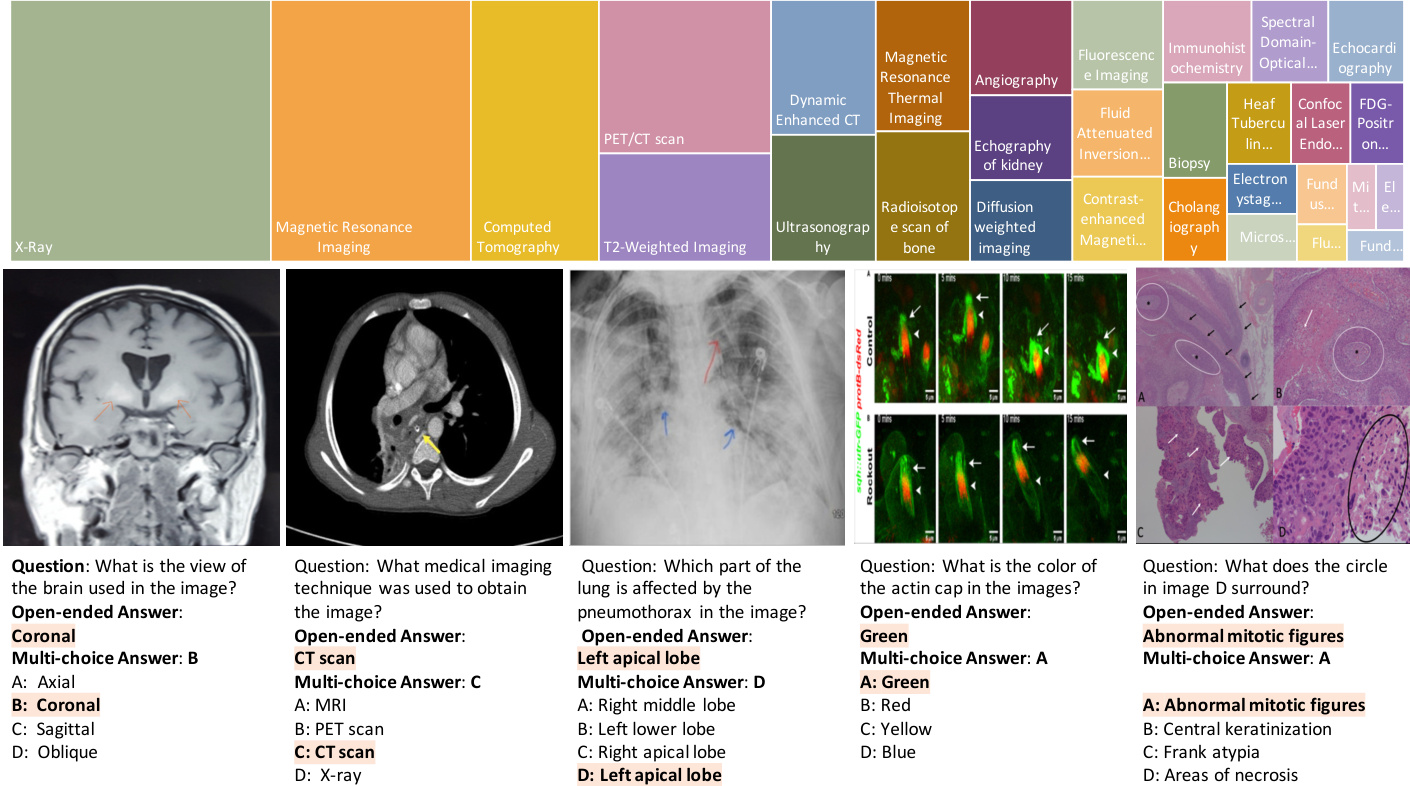 | VQA-Med-2021 | Radiology | MedPix database | 5k | 5k |