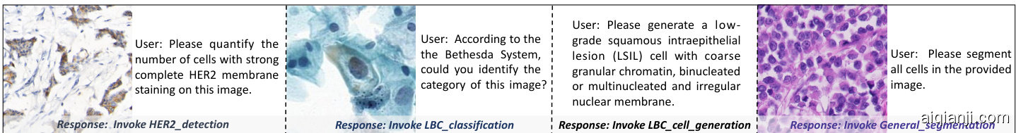 图 2: 病理学专用模型调用指令跟随样本示例。
