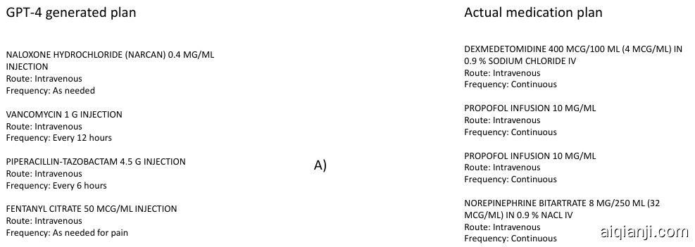 Figure 6: Medication plan generated by GPT-4 v.s. the actual plan