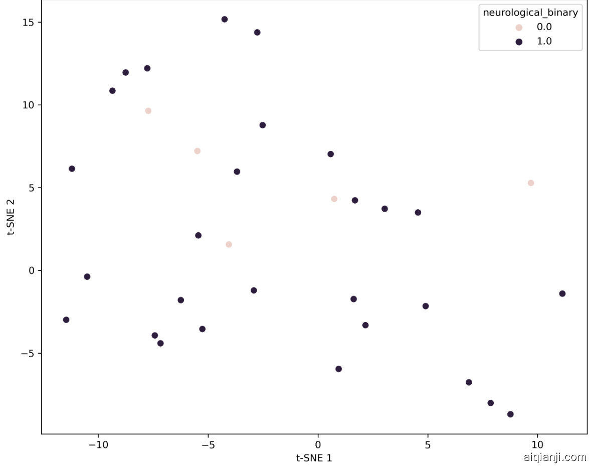 标记为"具有神经影响的多样化症状"的群体在各聚类中分布最为稀疏,表面上呈现出一系列多样化的症状。然而,我们的嵌入分析表明,该组大多数患者都有一个共同的潜在病症:神经系统疾病。这一观察结果表明,尽管存在各种其他症状,该组患者主要受到神经系统问题的影响 (见图 5)。我们的方法成功揭示了这种潜在相似性,证明该聚类方法能够识别症状表现看似迥异的患者之间的有意义的关联。