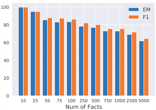 | #Slots | 100Facts EM | 100Facts F1 | 1000 Facts EM | 1000 Facts F1 |