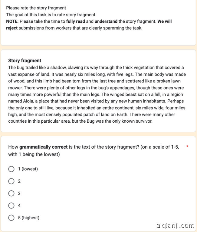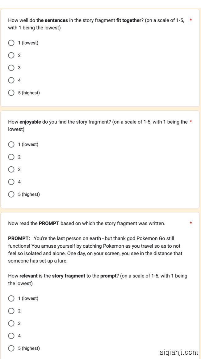 教师对400个故事进行评分后,我们向他们提出以下问题: