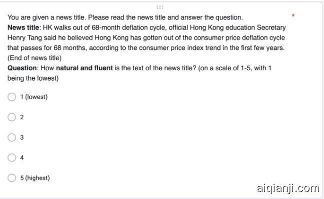 人工评估是理解自然语言处理(NLP)模型或算法性能的重要方法 (Guzmán et al., 2015; Gillick and Liu, 2010)。我们依赖人工评估是因为文本的某些方面难以通过自动评估指标来衡量,因此研究人员需要借助人类来评判NLP模型的输出质量。虽然人工评估在NLP领域普遍且不可或缺,但其不稳定性是出了名的 (Gillick and Liu, 2010; Clark et al., 2021)。Karpinska等人 (2021) 研究表明,低质量的人工评估工作会对评估结果产生不利影响,导致无法比较不同系统间的性能。可重复性是人工评估的另一个问题,因为很难招募相同的人类评估者并重新进行相同的评估。即使招募到相同的评估人员,曾经接触过该任务的评估者在下次评估时很可能会产生不同的结果,因为他们已经对该任务有所了解。虽然人工评估能更好地评估NLP系统并具有某些优于自动评估指标的优势,但其缺点使得难以可靠地评估NLP系统。