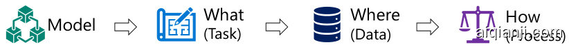 图 3: AI模型的评估流程,包括大语言模型。由于训练数据规模庞大,部分评估方案可能不适用于深度学习模型评估。因此,静态验证集评估长期以来都是深度学习模型的标准选择。例如,计算机视觉模型采用ImageNet [33]和MS COCO [120]等静态测试集进行评估,大语言模型则普遍使用GLUE [200]或SuperGLUE [199]作为测试集。