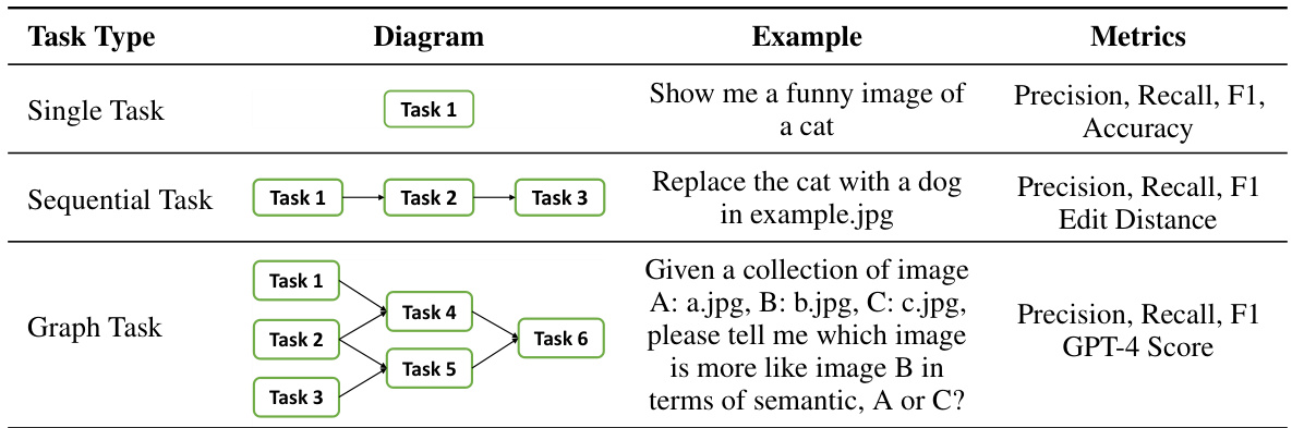 如前所述,我们创建了两个用于评估任务规划的数据集。此处提供这些数据集的更多细节。我们总共收集了3,497个多样化的用户请求。由于标注该数据集以获取每个请求的任务规划工作量较大,我们利用GPT-4的能力进行自动标注。最终,这些自动标注的请求可分为三类:单任务(1,450个请求)、序列任务(1,917个请求)和图任务(130个请求)。为进行更可靠的评估,我们还构建了一个人工标注数据集。邀请专家标注员对一些复杂请求进行标注,共包含46个示例。目前,人工标注数据集包含24个序列任务和22个图任务。关于GPT-4标注和人工标注数据集的详细统计信息如表11所示。