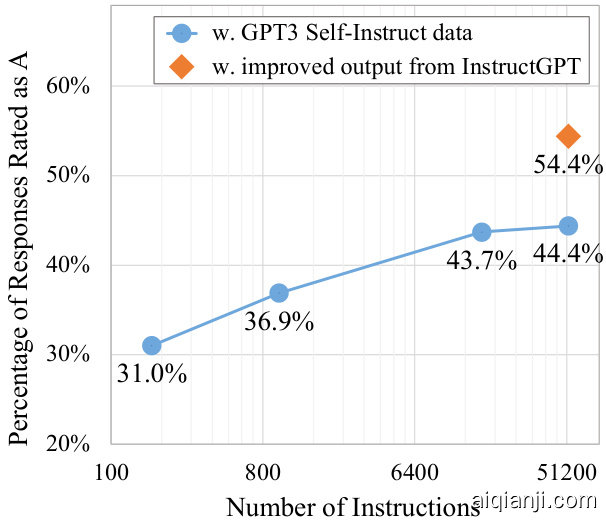 依赖大模型。由于SELFINSTRUCT依赖于从大语言模型中提取的归纳偏差(inductive biases),它可能对更大的模型效果最佳。如果确实如此,这可能为那些没有强大计算资源的人设置门槛。我们希望未来的研究能仔细考察模型规模或其他各种参数带来的收益变化。值得注意的是,人工标注的指令调优也存在类似局限:模型越大,指令调优的收益越高(Wei et al., 2022)。