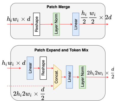 图 3: 我们多尺度特征提取器中使用的补丁合并与扩展操作