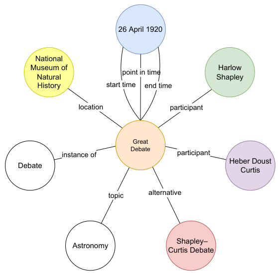 The Great Debate, also called the Shapley - Curtis Debate, was held on 26 April 1920 at the National Museum of Natural History, between the astronomers Harlow Shapley and Heber Doust Curtis. The format of the Great Debate has been used subsequently to argue the nature of fundamental questions in astronomy.