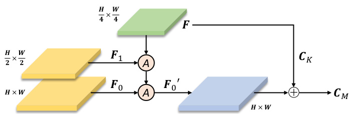 图 5: 多尺度轮廓细化模块概览。"A"表示特征融合过程,遵循FPN [57]。