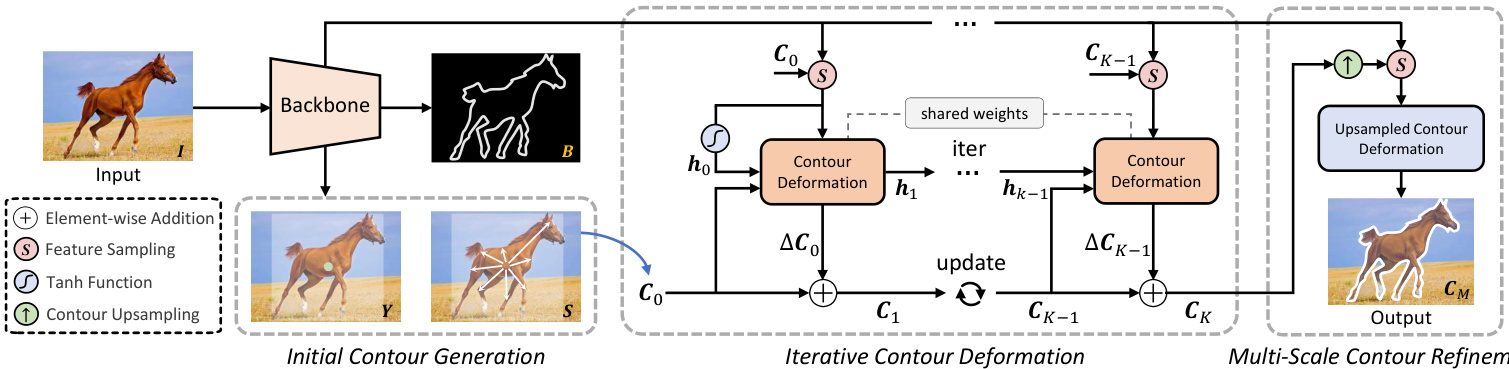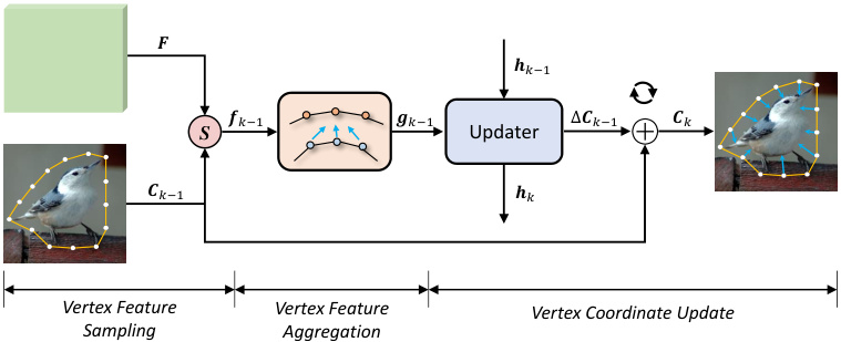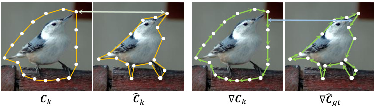 After $K$ iterations, we obtain the contour prediction $C_{K}\in$ $\mathbb{R}^{N_{v}\times2}$ tightly enclosing an object instance, as shown in Fig. 2.