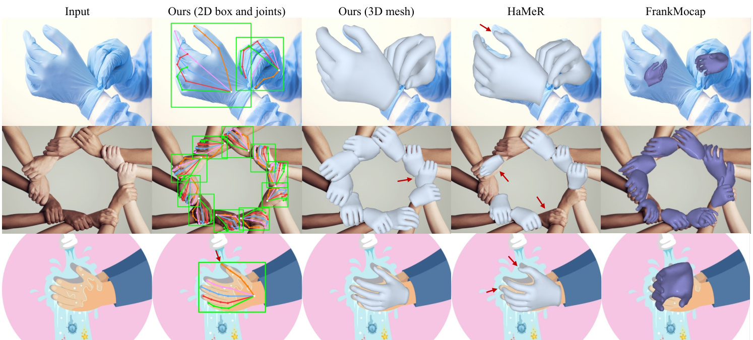 人类智力的优越性体现在他们用手创造、塑造和与世界互动的能力上。在计算机科学与智能时代,手部理解在现实技术 [24, 57]、行为理解 [30, 46]、交互建模 [15, 69]、具身智能 [11, 61] 等领域至关重要。