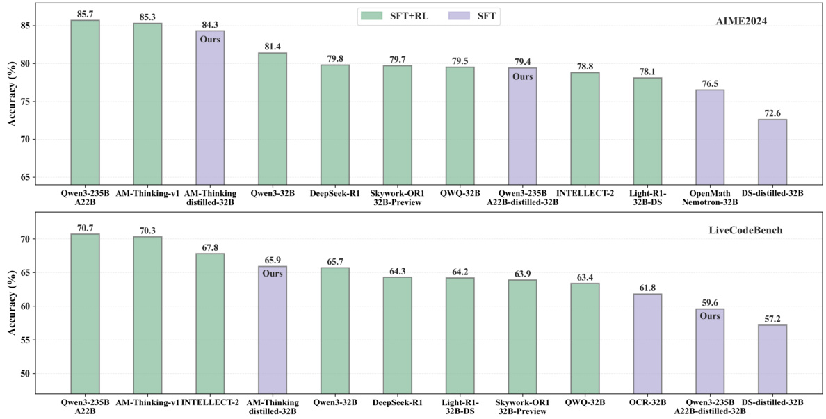 Figure 1: Open-source model benchmarks on AIME2024/Live Code Bench.
