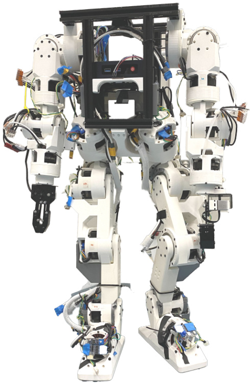 Apart from the non-standard structural parts, which are printed on a common desktop 3D printer, all components can be purchased from major online vendors in multiple countries. These design choices reflect the goal of creating an accessible and customizable humanoid platform.