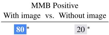 表 16: ACUTE-Evals 显示,MMB Positive 模型在响应图像方面明显优于在训练或推理期间未显示任何图像的等效模型。