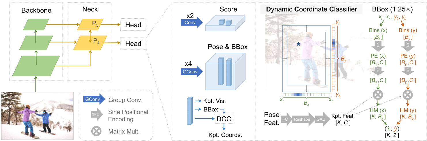 • 一种专为密集预测设计的创新坐标分类技术,通过坐标分箱实现精确关键点定位,同时解决不同实例尺寸和复杂度的问题。