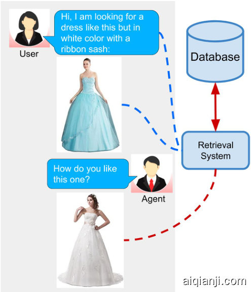 该任务也与交互式图像检索任务 [4, 21] 和基于属性的产品检索任务 [27, 23] 密切相关。这些方法存在局限性,例如查询文本仅限于一组固定的相对属性 [27]、需要多轮自然语言查询作为输入 [4, 21],或查询文本只能是单个词(即属性)[6]。相比之下,我们的方法中输入的查询文本不受限于固定属性集,也不需要与用户进行多次交互。与我们的工作不同,这些方法的重点在于建模用户与AI智能体之间的交互。