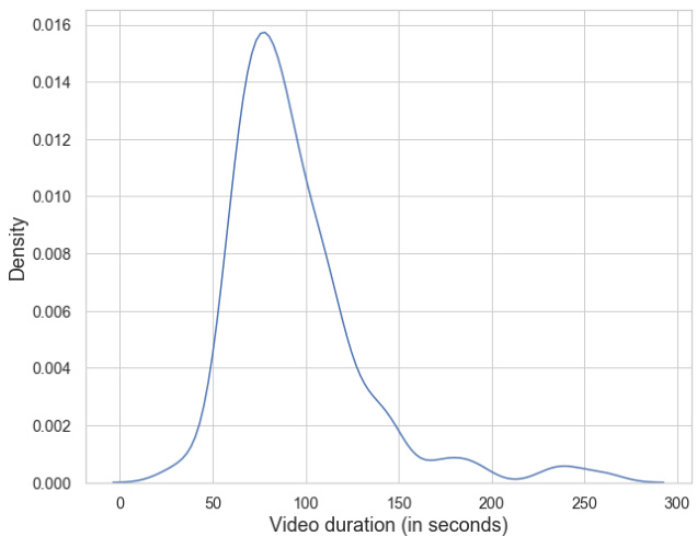 Figure 2: Distribution of the duration of videos (in seconds) in the test set.