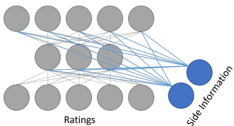 CF only relies on the feedback of the users regarding a set of items. However, adding more information may help to increase the prediction accuracy and robustness. Furthermore, CF suffers from the cold start problem: when little information is available on an item, it will greatly lower the prediction accuracy. We now integrate side information to CFN to alleviate the cold start scenario.