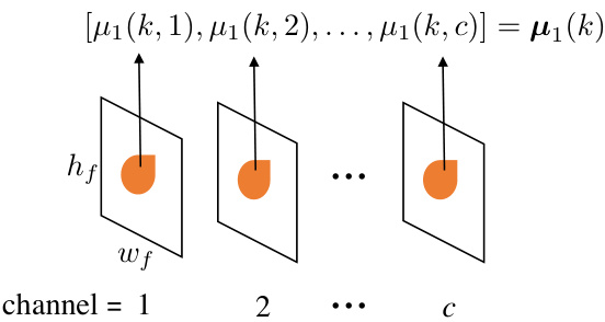 Figure 4. Performing moment pooling on deep feature   $\textbf{F}\in$   $\mathbb{R}^{\tilde{h}{f}\times w_{f}\times c}$  . We use the pooling of first moment as an example.
