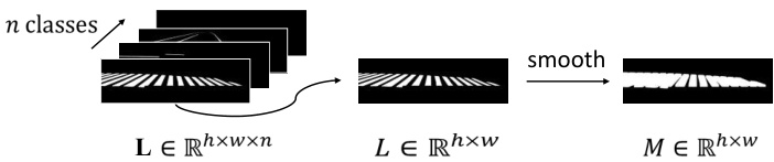 Figure 3. Generation of AOI. Take one class label map  $L$   as example. We perform smoothing on  $L$   and obtain one AOI map  $M$  .