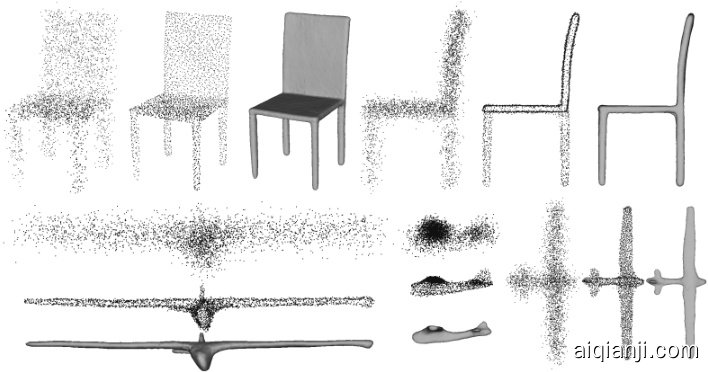 现代计算机视觉和机器学习领域最受追捧的目标之一,是让机器在有限输入条件下理解并处理三维空间。这种能力体现在多个下游视觉与图形任务中,例如从噪声且相对稀疏的点云中进行形状重建。鉴于这种轻量但不完整的三维表示形式无处不在——无论是通过如今日益普及的扫描设备获取,还是通过运动恢复结构(Structure From Motion)或多视图立体(MultiView Stereo)等算法生成(如[63, 64])——从点云恢复完整形状成为一个尤为重要的问题。虽然基于经典优化的方法(如泊松重建[33]或移动最小二乘法[28])大多能成功处理密集且干净的点集及法线估计,但基于深度学习的现代方案提供了更快速、更鲁棒的预测,尤其适用于含噪声的稀疏输入,且无需法线信息。