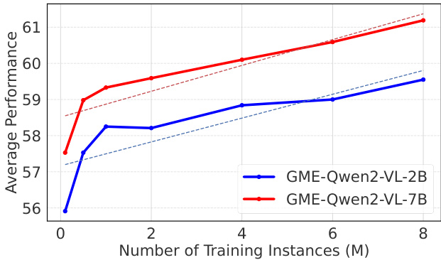 In this section, we present the training framework for developing the General Multimodal Embedder (GME) model. We describe the contrastive learning approach used to train the embedding model. Building on this, we conduct detailed experiments to determine the optimal balance of training data type. Specifically, our experiments demonstrate that diverse data type mixtures significantly enhances the model’s ability to perform retrieval across various modalities. Lastly, recognizing the scarcity of high-quality fused-modal training data, we propose a novel method for automatically synthesizing large-scale, high-quality training data using MLLM.